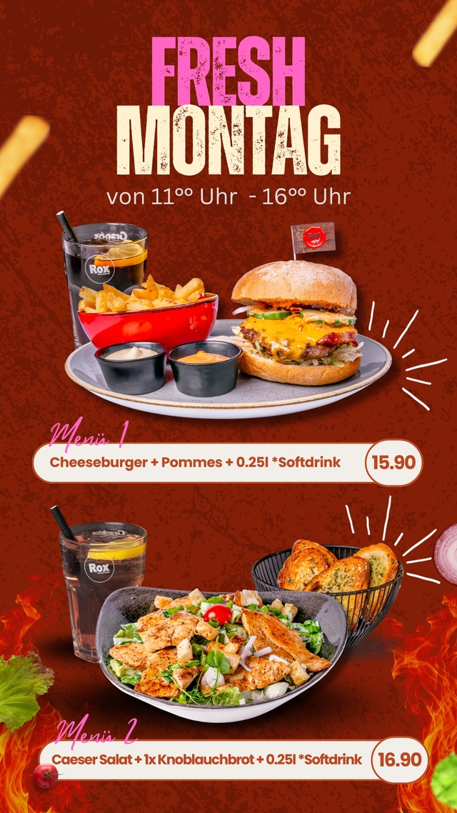 Kulinarisch verwöhnen wir mit Grillspezialitäten vom Lavasteingrill aller Art. Besonders beliebt sind vor allem unsere Burger-Symphonien, die zarten Steaks, die deftigen Ripperl, die frisch gegrillten Gemüse-Varianten und die feinen Desserts. Viele andere Speisen findet ihr auf der Karte der Rox Musicbar & Grill.